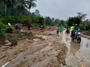 Kapolsek menjelaskan, di Jalinbar Pekon Waykerap terdapat lima titik terdiri dari material krokos dan tanah setinggi rata-rata 1 meter yang terbawa luapan air dari sungai Way Seluang dan Way Dakok. Sehingga, menutupi badan jalan yang membuat arus lalu lintas terganggu.