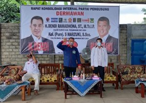 Calon Bupati Petahana Pesawaran Dendi Ramadhona menghadiri rapat konsolidasi sekaligus pengukuhan dukungan partai politik pengusung Dermawan (Dendi Ramadhona-Marzuki untuk Pesawaran). Rapat konsolidasi dan pengukuhan tersebut berlangsung di Batanghari Ogan, Pesawaran, Kamis (1/10/2020). Kehadiran Dendi Ramadhona disambut antusias warga setempat.