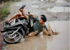 Kedua pemuda ini sengaja melakukan pemotretan dijalan utama yang menghubungkan antara dua kabupaten Tulang Bawang Barat dan kabupaten Tulang Bawang, yang berkubang dan penuh kubangan. Dalam foto itu, dua pemuda dengan pose pengendara sepeda motor terjatuh di kubangan itu.