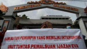 Jakarta (SL)-Lembaga Swadaya Masyarakat Informasi Sosial (Infosos) Lampung menggelar unjukrasa di Mabes Polri dan Kantor Kementrian Dalam Negeri (Kemendagri), di Jakarta, Jumat 19 Februari 2021. Mereka meminta Polisi segera mengusut kasus dugaan pemalsuan ijazah istri Walikota Bandar Lampung Eva Dwiana,