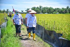Di tengah-tengah persawahan di desa Sungai Badak kecamatan Mesuji Bupati H.Saply Th memberikan semangat kepada para petani agar panen kali ini bisa berhasil hasilnya melimpah.