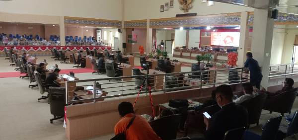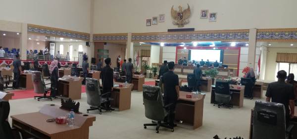Mesuji (SL)-DPRD Kabupaten Mesuji menggelar rapat paripurna pembicaraan tingkat 2 dalam rangka penandatanganan persetujuan bersama nota kesepakatan raperda tentang penanggung jawaban pelaksanaan APBD Kabupaten Mesuji tahun 2020 yang digelar lantai 3 gedung DPRD Kabupaten Mesuji, Kamis 01 Juli 2021.