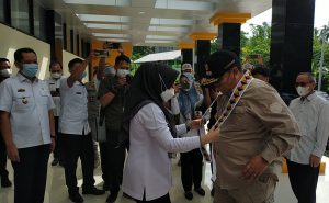 Bupati Tanggamus Hj. Dewi Handajani, saat menyambut kedatangan Gubernur Lampung Ir. H. Arinal Djunaidi