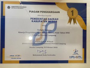 Mesuji(SL)- Badan Pengelola Keuangan dan Aset Daerah (BPKAD) kabupaten Mesuji meraih prestasi penghargaan terbaik kategori kinerja pengelolaan dana alokasi khusus fisik tahun 2021 lingkup wilayah provinsi Lampung terbaik kedua untuk tingkat Nasional, Kamis 17 Maret 2022.