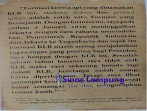 Bandung (SL)-Presiden pertama Republik Indonesia, Soekarno mengenang perjalanan dengan Kereta Luar Biasa (KLB). Bapak proklamator itu mengatakan, “Saya pada malam 4 Januari 1946 meninggalkan Jakarta secara rahasia memindahkan Pemerintah Republik Indonesia dari Jakarta ke Yogyakarta. Sejak itu Formasi KLB masih sering menjalankan tugas-tugas yang penting bagi Presiden”.