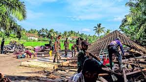 Lampung Timur, sinarlampung.co-Puluhan rumah non permanen roboh dan ratusan lebih rumah lainya mengalami rusak parah, akibat angin puting beliung di Desa Adi Luhur dan Desa Mumbang Jaya, Kecamatan Jabung, Lampung Timur, Sabtu, 2 Maret 2024 sekitar pukul 17.15 WIB sore lalu.