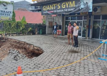 Bandar Lampung, sinarlampung.co-Lahan halaman Hotel Bambu Kuning, eks hotel Cimalaya, Jalan Imam Bonjol No.19, Suka Jawa Baru, Kecamatan Tanjung Karang Barat, Kota Bandar Lampung longsor alias amblas.
