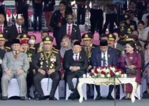 Jokowi kemudian menyapa Menhan sekaligus presiden terpilih, Prabowo Subianto. Prabowo berdiri sambil memberikan hormat kepada Jokowi. “Yang saya hormati Presiden terpilih RI Bapak Prabowo Subianto,” ujar Jokowi yang disambut tepuk tangan peserta upacara.