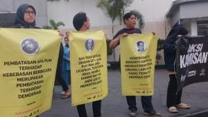 Lampung Timur, sinarlampng.co-Sejumlah aktivis di Yogyakarta turut menyuarakan solidaritasnya bagi Meila Nurul Fajriah dalam aksi kamisan di Tugu Pal Putih Yogyakarta, Kamis 1 Agustus 2024. Melia merupakan advokat di LBH Yogyakarta yang mendampingi puluhan korban kekerasan seksual yang diduga dilakukan oleh alumni Universitas Islam Indonesia (UII) inisial IM.
