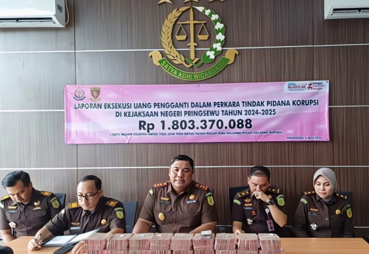 PRINGSEWU, sinarlampung.co– Upaya pemulihan kerugian negara oleh Kejaksaan Negeri (Kejari) Pringsewu masih menyisakan pekerjaan rumah yang besar. Hingga Senin 6 April 2026, korps korps baju cokelat tersebut baru berhasil mengeksekusi uang pengganti sebesar Rp1,8 miliar, dari total kerugian negara yang mencapai hampir Rp19 miliar.