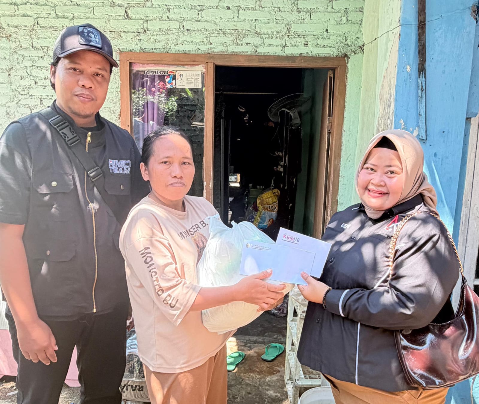 Bersama Pimpinan Umum Harian KINNI.ID, Septiani, ia menyalurkan bantuan logistik kepada korban banjir di Gang Walet, Kelurahan Tanjung Agung Raya, Kecamatan Kedamaian, Kamis (16/4/2026).